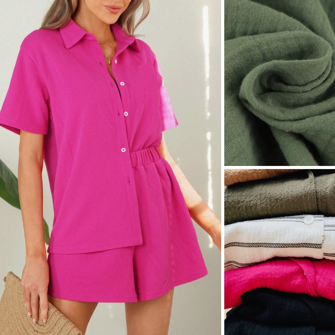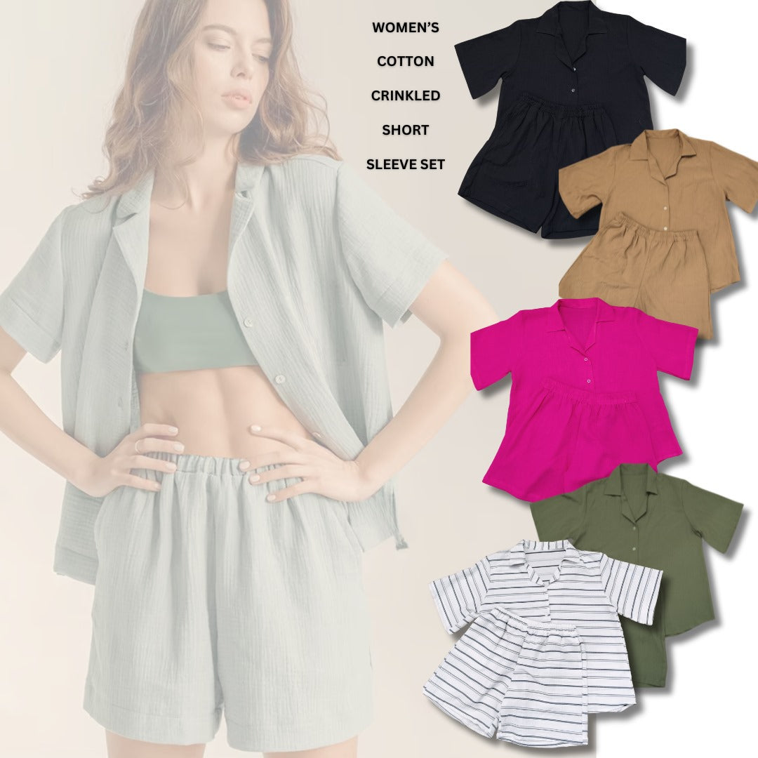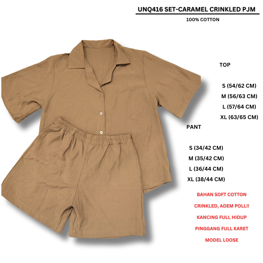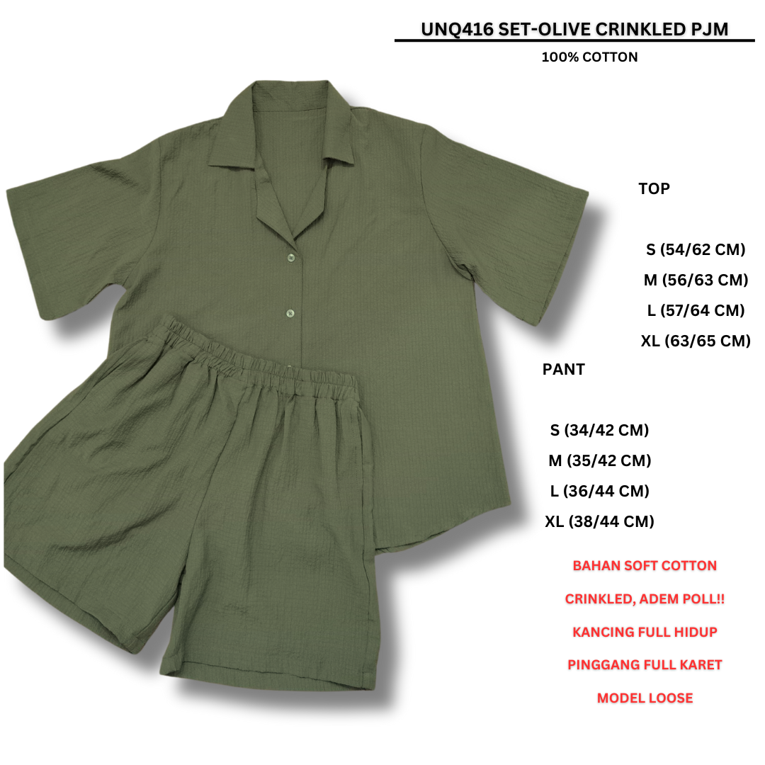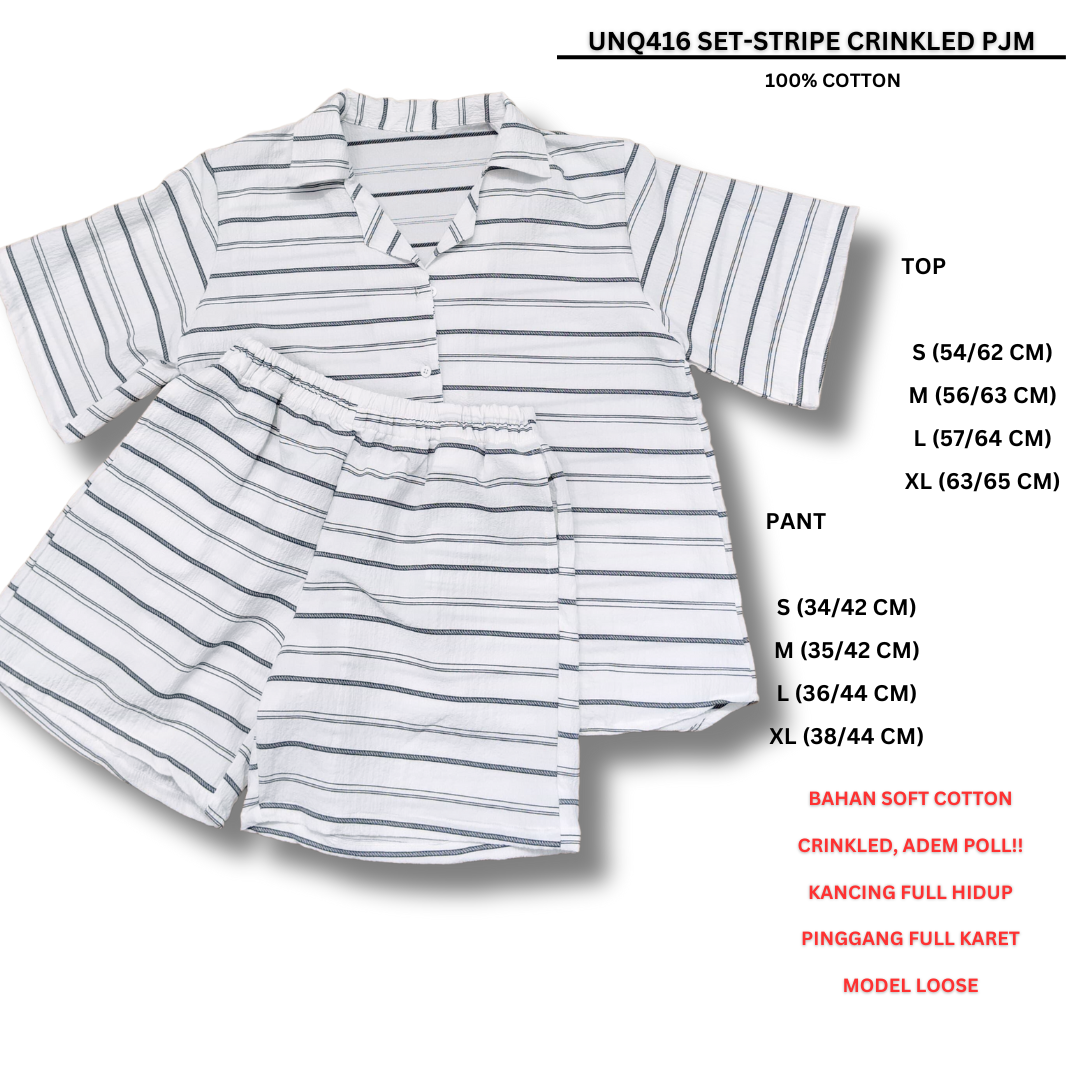 Set Piyama Wanita Lengan Pendek (UNQ416 SET CRINKLED PJM)