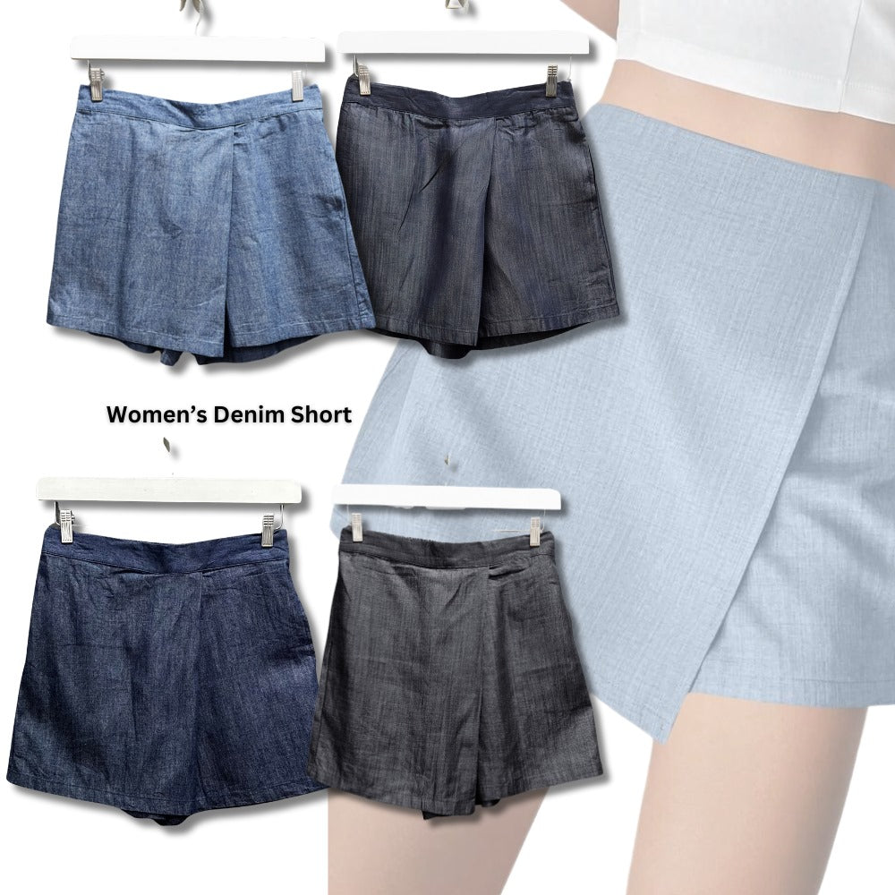 Skort Denim Wanita Highrise (UNQ435 DENIM WARP SHORT)